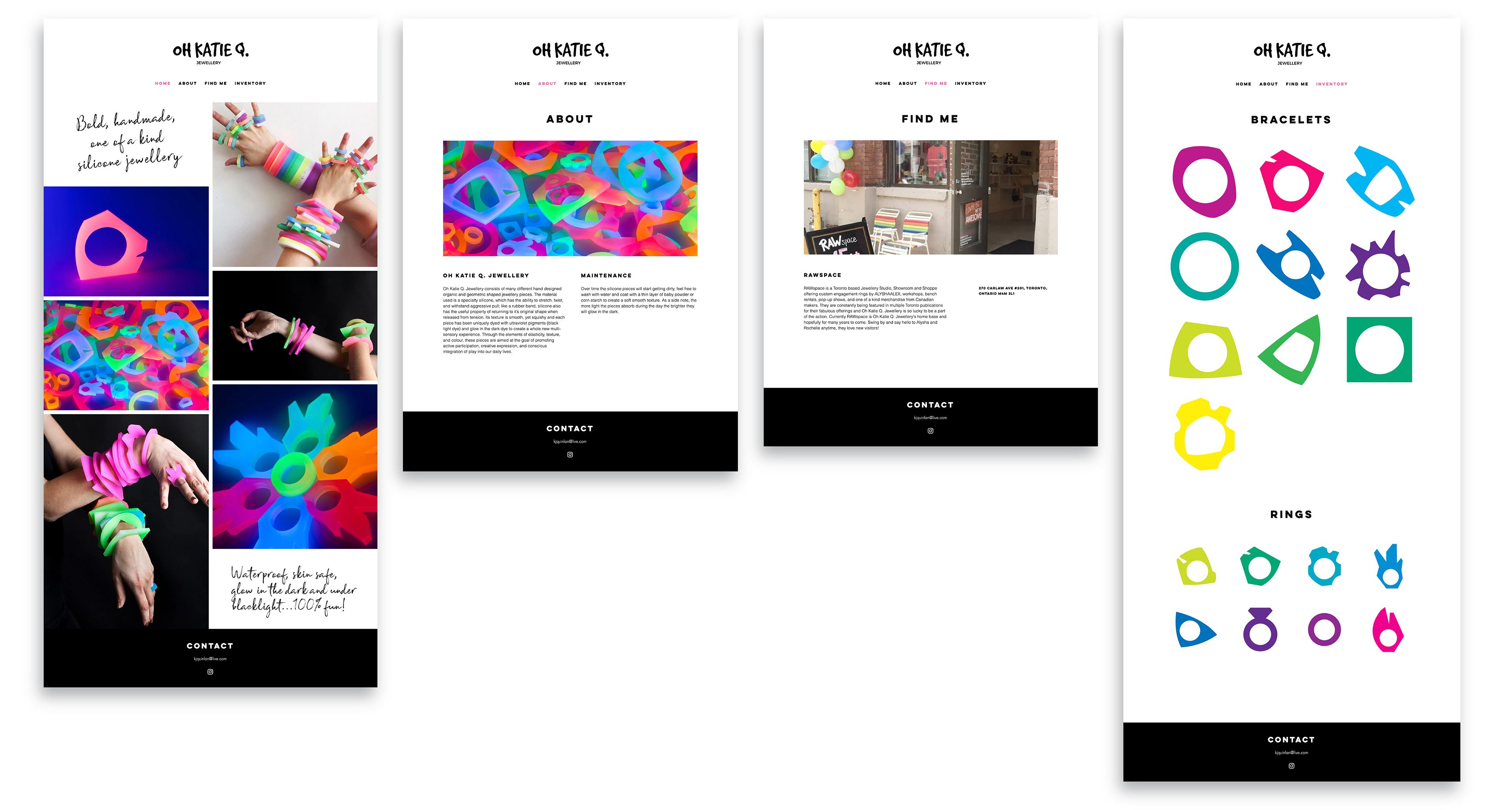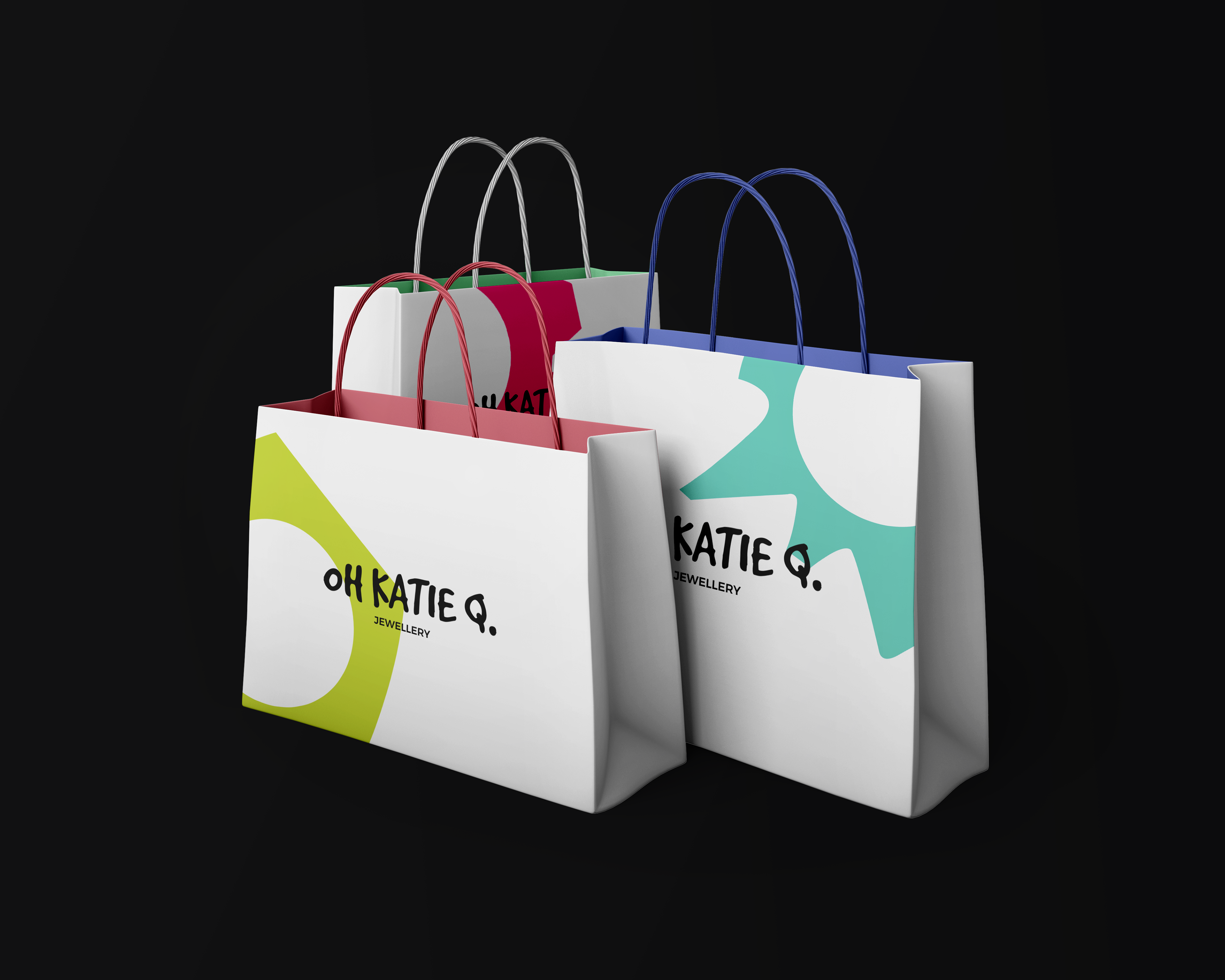 In order to stand out and make a visual impact in the market Oh Katie Q. Jewellery needed a strong and distinctive identity that conveyed its playful personality and engaging spirit. I did this by defining a strong logo, color palette, typography, and supporting visual assets.