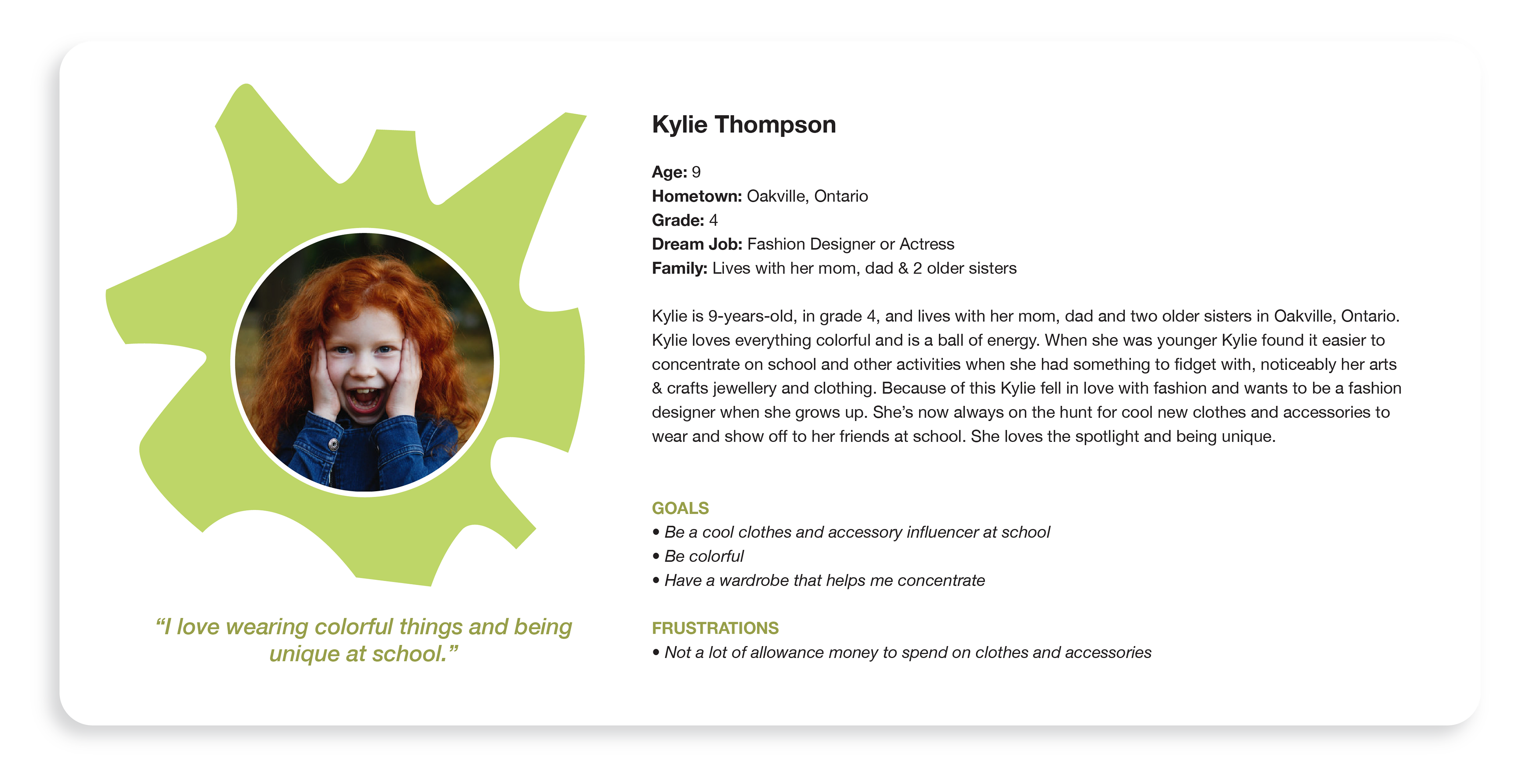 Oh Katie Q.'s mission is to evoke happiness, exploration, and play into our daily lives while also creating a unique outlet for personal expression. To understand the needs of Oh Katie Q.'s customers, I created user personas based off customer feedback and conversations from trade shows and events to help paint a clear picture of our customers unique stories, demographics, pain points, and desires.